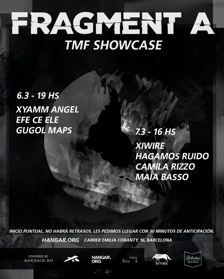 En esta edición estarán: Hagamos Ruido, la propuesta de Nico Lettieri Lodigiani (Argentina, residente en Barcelona), que explora el remix, el sampleo y la síntesis a través de directos de livecoding y formatos híbridos. También estará EFE CE ELE, proyecto de Feli Cabrera López (Colombia), que combina música de baile y de escucha para crear texturas complejas y atmósferas cinematográficas.