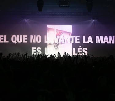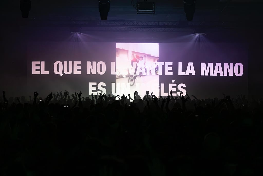 En la pantalla: “El que no levante la mano es un inglés”.