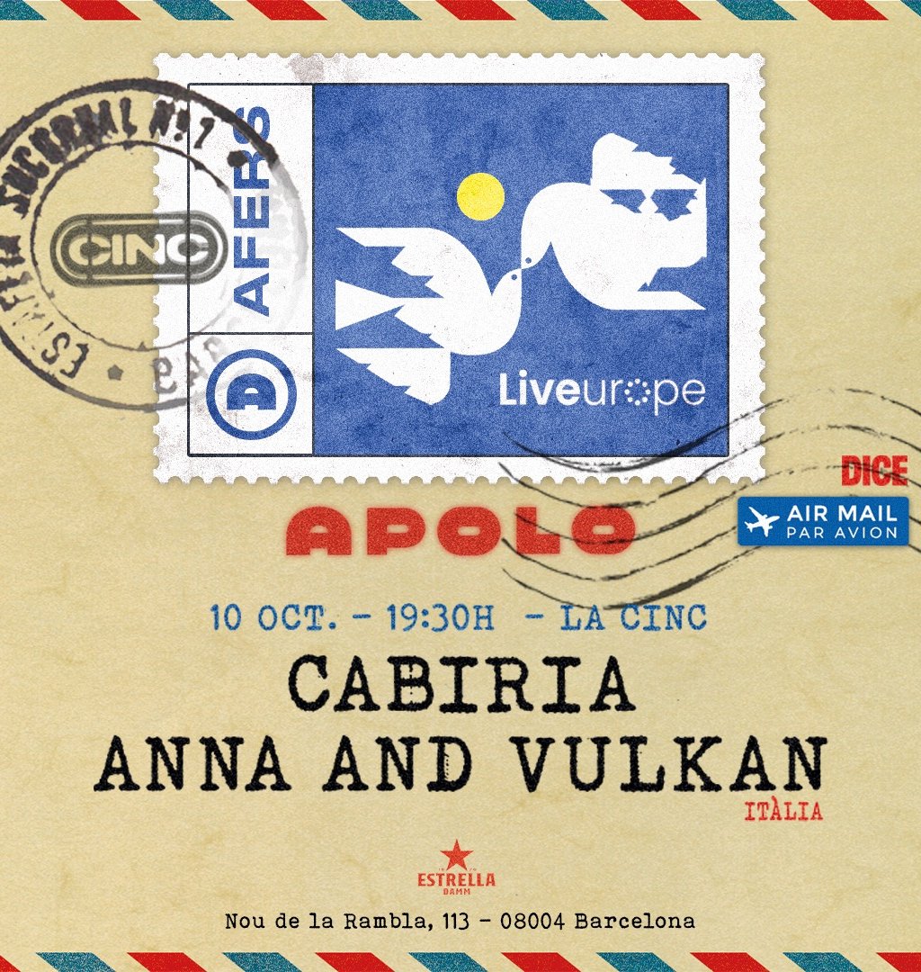 La Sala Apolo se convierte en uno de los escenarios más cool de Barcelona con el nuevo ciclo AFERS, que en cada cita reúne a un artista local con un formato cercano, íntimo y cuidado. Una propuesta que busca abrir las puertas a lo más fresco del panorama musical actual. El próximo 10 de octubre se celebra el primer encuentro, con Cabiria y Anna and Vulkan, dos propuestas que comparten un terreno común —el disco pop— pero que lo exploran desde miradas muy distintas.